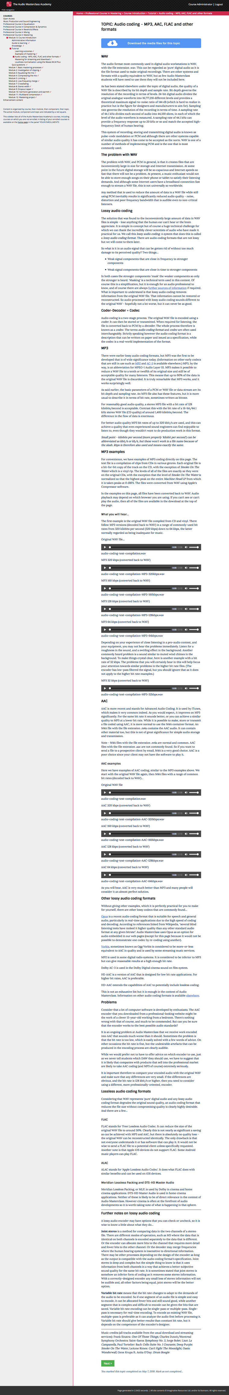 - The complete learning materials and audio examples on mastering of the Audio Masterclass Music Production and Sound Engineering Course