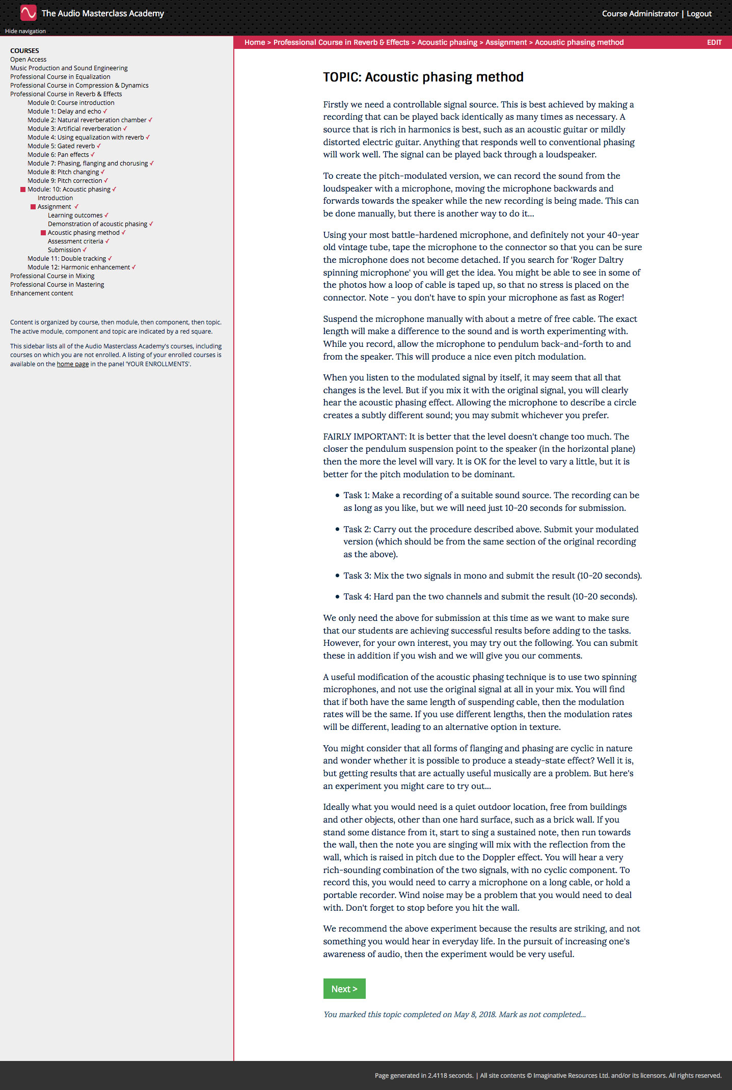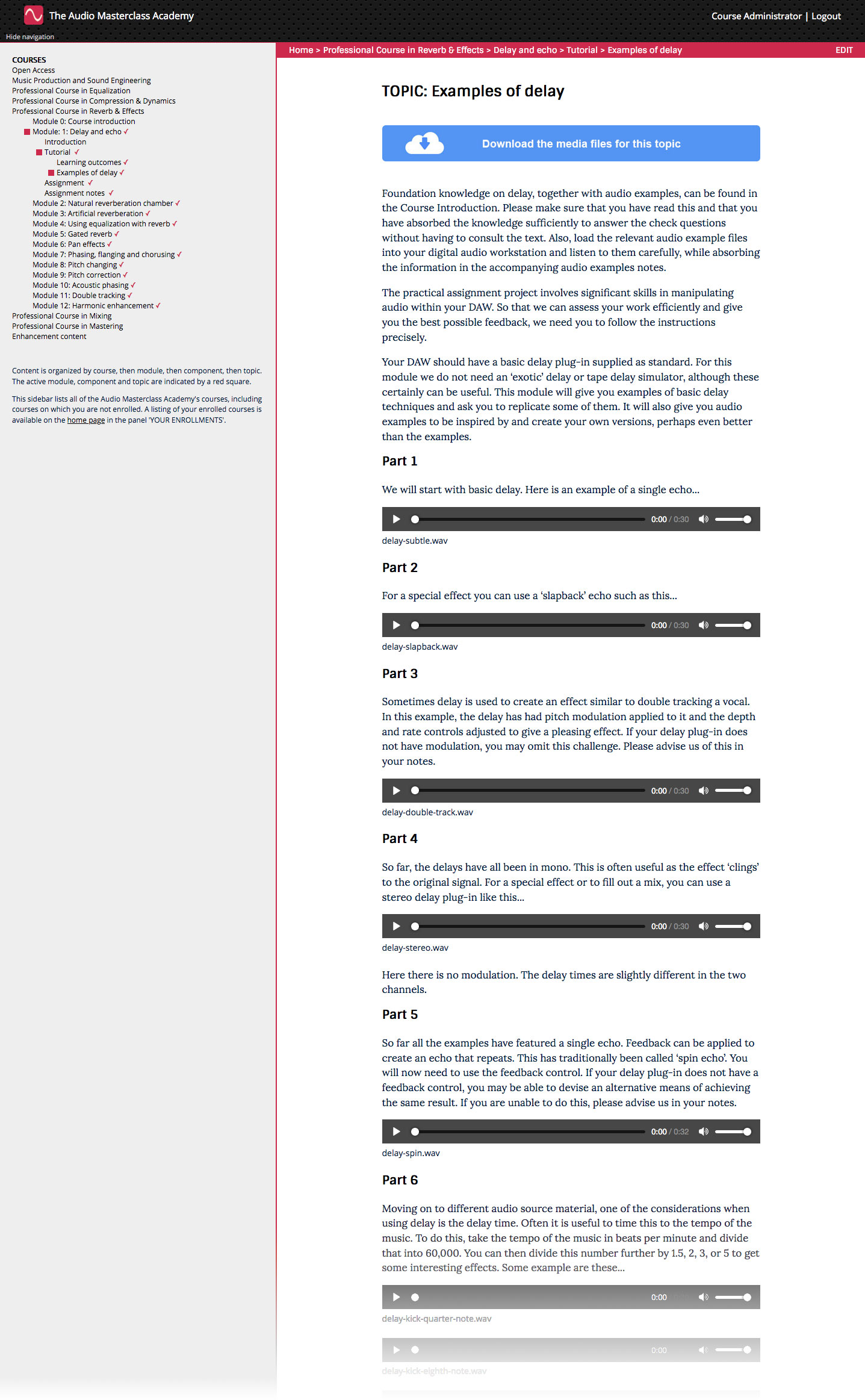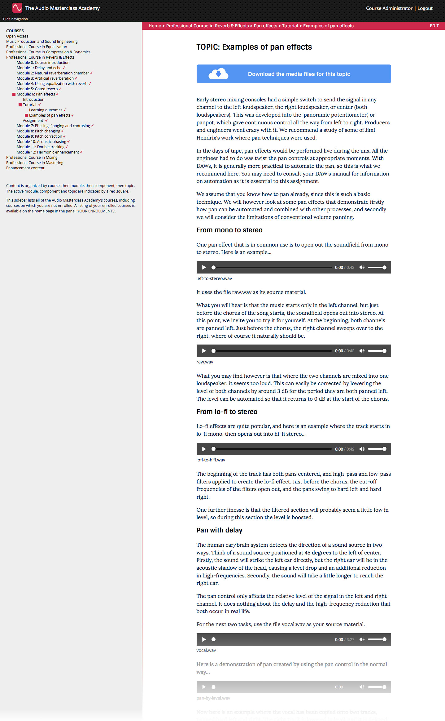 Audio Masterclass has experience in audio education going back to 1986. We have been running online courses since 2001 which is longer than any other audio training provider on the web.